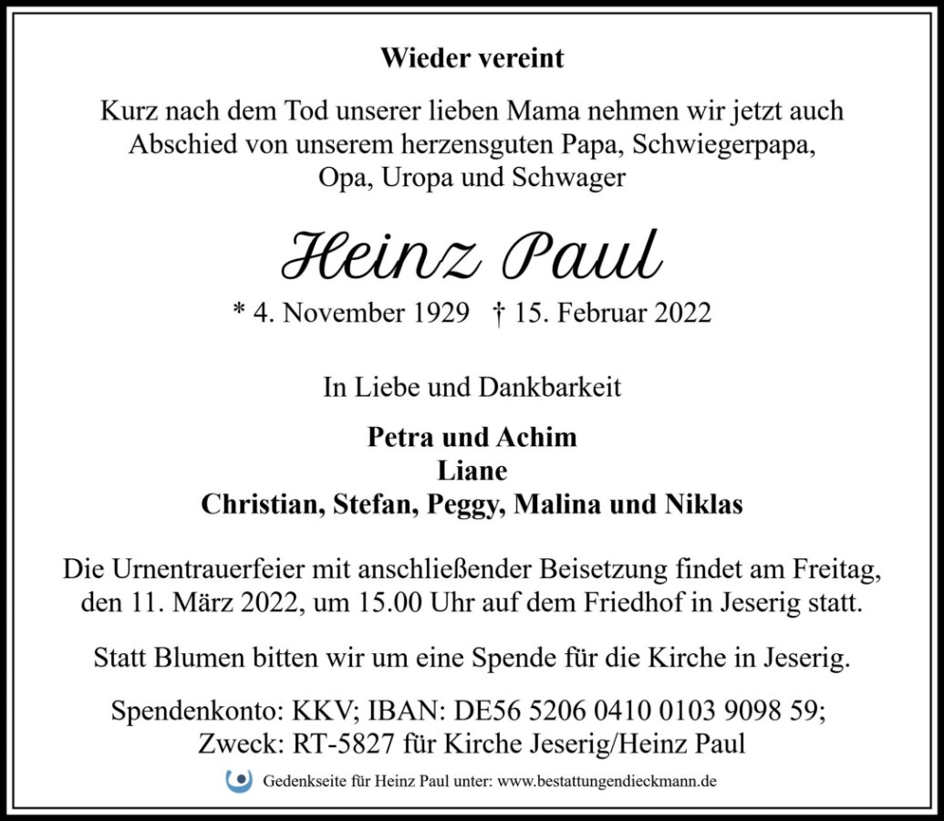 Heinz Paulgestorben am 15. Februar 2022