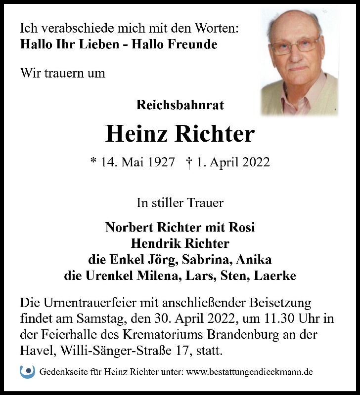 in diesen Tagen fühlen wir mit Ihnen und wünschen Ihnen von Herzen, dass Sie aus den glücklichen Erinnerungen Kraft schöpfen, um positiv in die Zukunft zu gehen. Diese Gedenkseite möge Ihnen dabei helfen, Ihre Trauer zu teilen und das Andenken gemeinsam wachzuhalten.