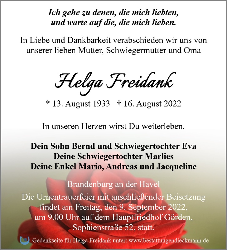Helga Freidank geb. Kohlhase