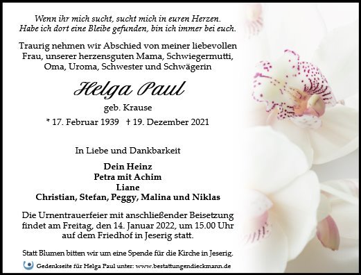 gestorben am 19. Dezember 2021 in Kloster Lehnin