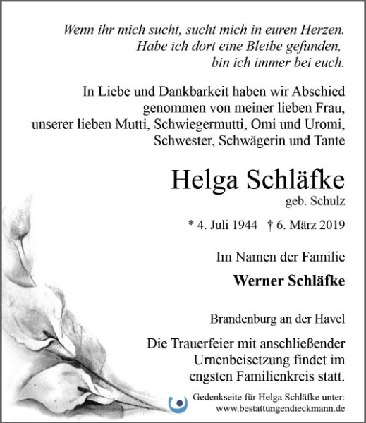 Helga Schläfkegestorben am 6. März 2019