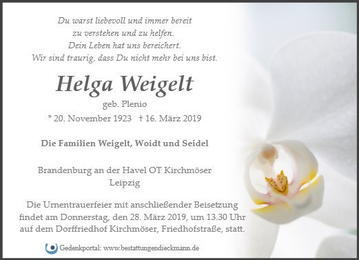 Helga Weigelt geb. Plenio