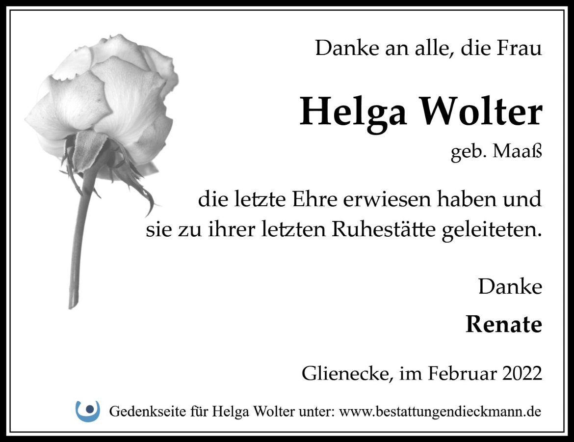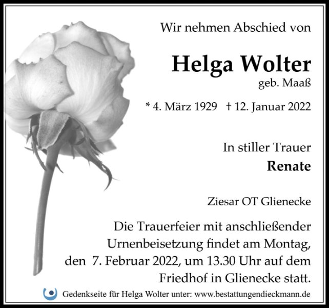 Helga Woltergestorben am 12. Januar 2022