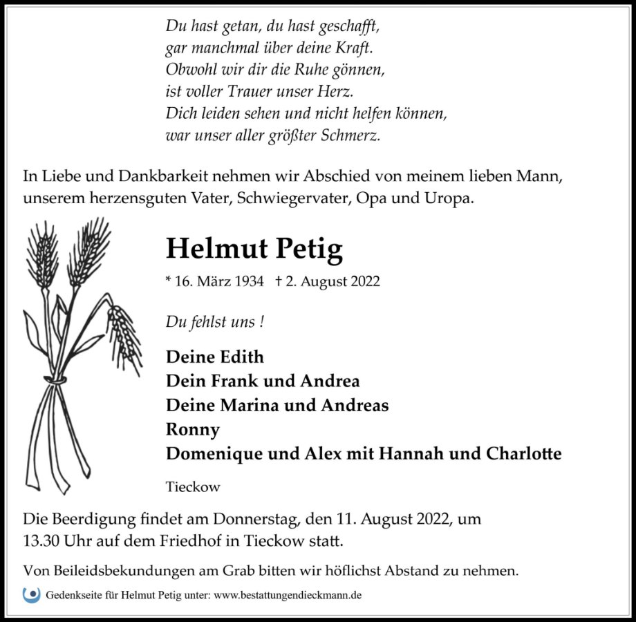gestorben am 2. August 2022 in Havelsee OT Fohrde