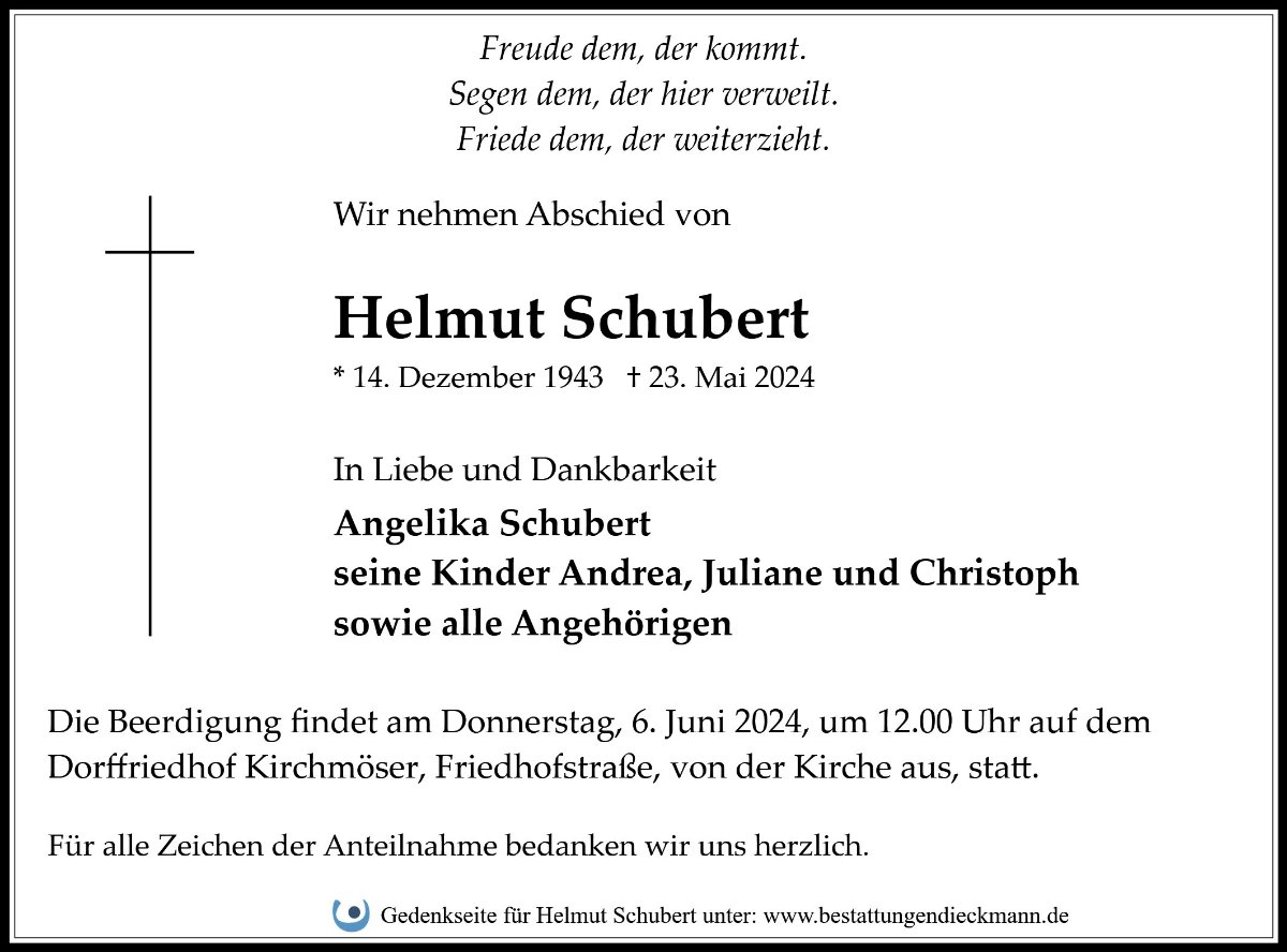 Herzlich Beileid an alle Angehörigen von Herzen Werner Schmurr