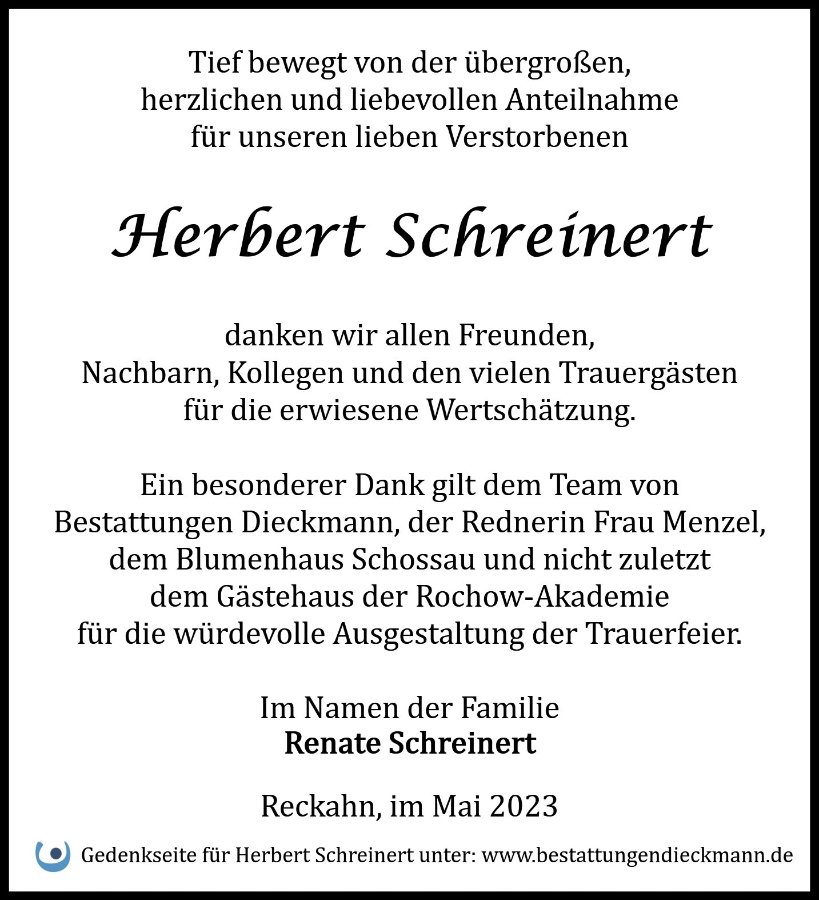 Herbert Schreinertgestorben am 7. April 2023