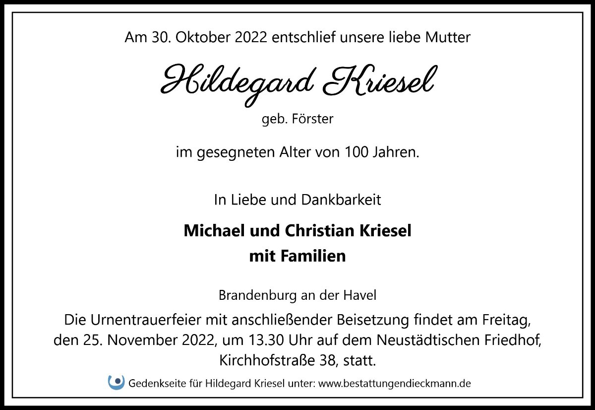 Hildegard Kriesel geb. Förster