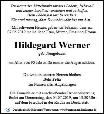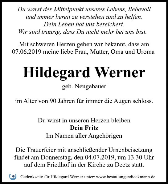 Urnentrauerfeier, Kirchlicher Friedhof Deetz