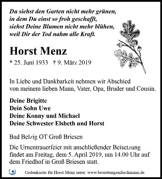 Horst Menzgestorben am 9. März 2019