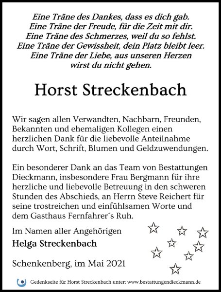 Horst Streckenbachgestorben am 1. Mai 2021