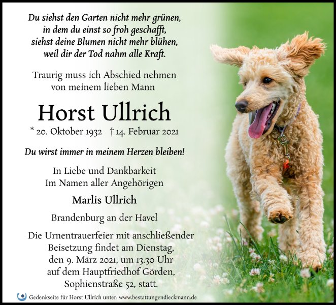 Werte Frau Ullrich wir teilen Ihren Schmerz und trauern mit Ihnen.