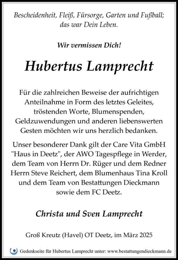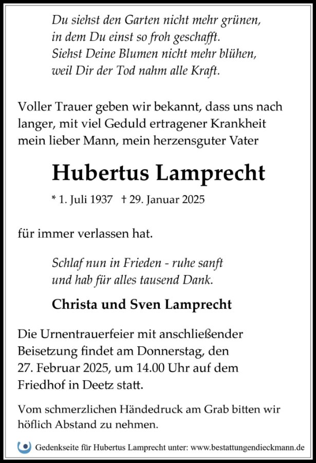 Hubertus Lamprechtgestorben am 29. Januar 2025