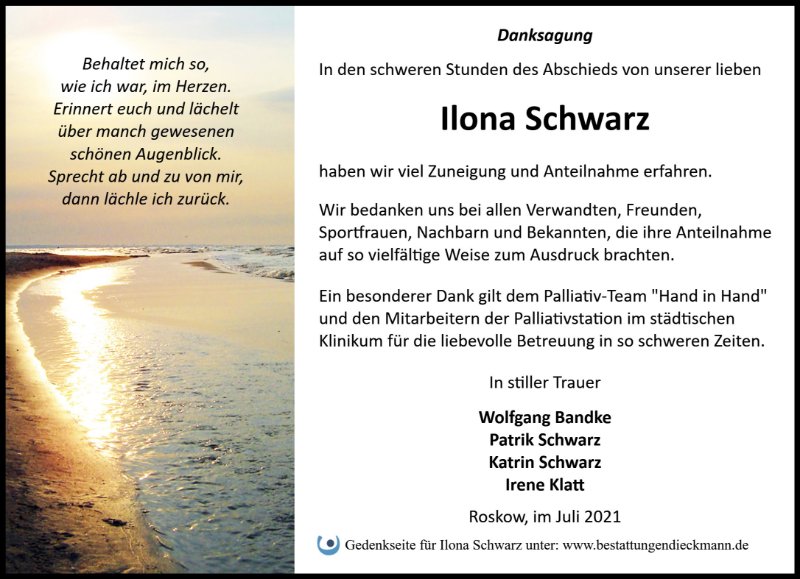 Ilona Schwarzgestorben am 26. Juni 2021