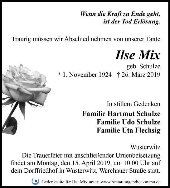 gestorben am 26. März 2019 in Brandenburg an der Havel OT Kirchmöser