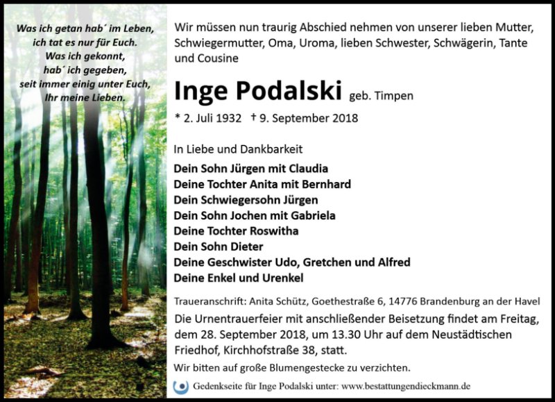 Lesen Sie hier die Anzeigen und Trauerpost!