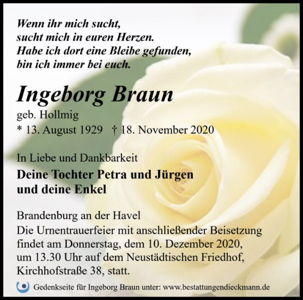Ingeborg Braungestorben am 18. November 2020