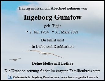 Ingeborg Gumtow geb. Tigör