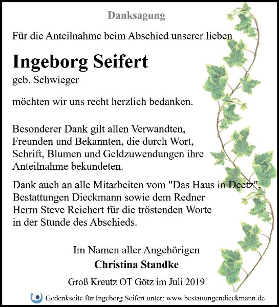Ingeborg Seifert geb. Schwieger