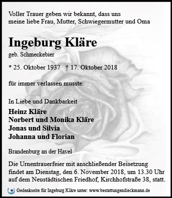 gestorben am 17. Oktober 2018 in Brandneburg an der Havel