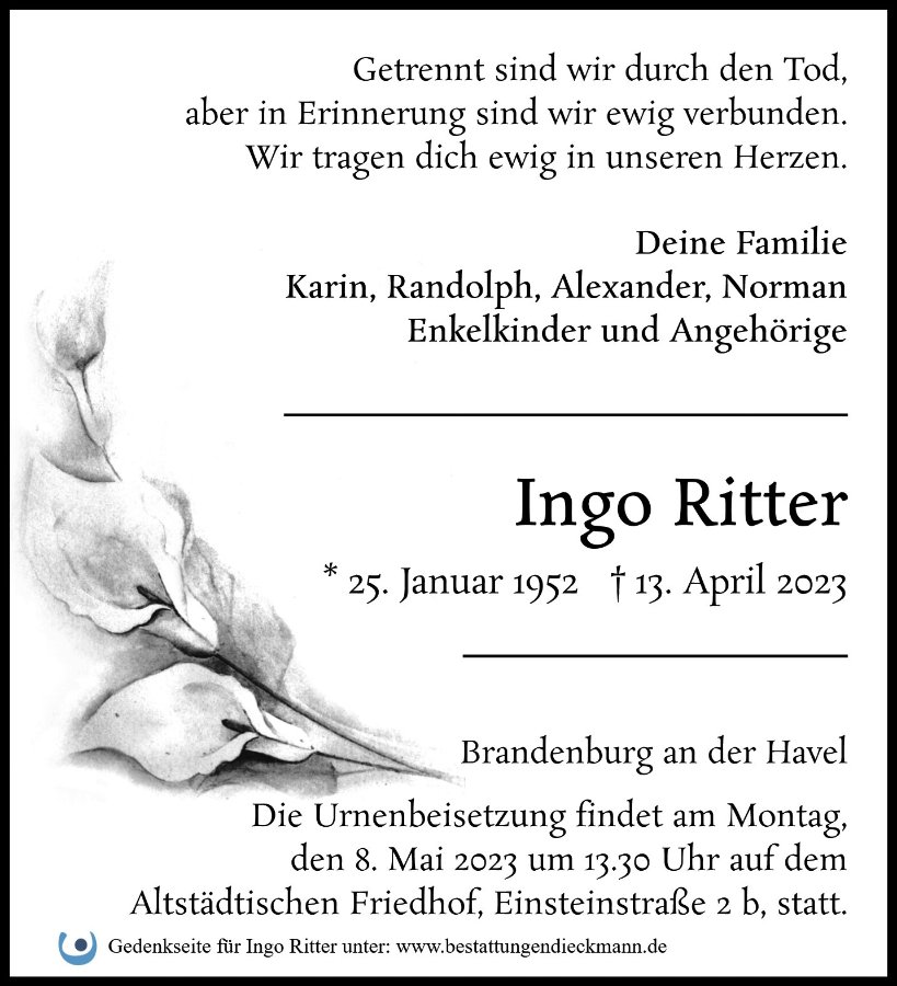 Ingo Rittergestorben am 13. April 2023