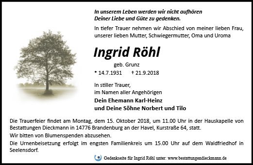 gestorben am 21. September 2018 in Bernau-Waldfrieden