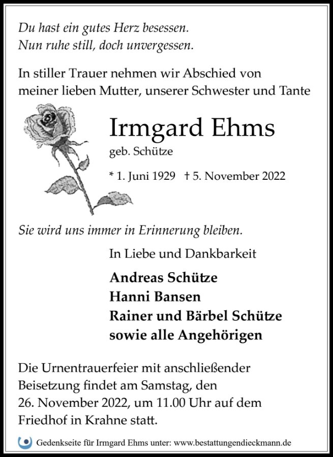 gestorben am 5. November 2022 in Brandenburg an der Havel OT Kirchmöser