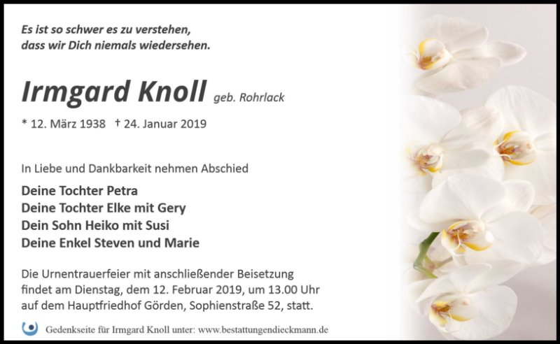 Irmgard Knollgestorben am 24. Januar 2019