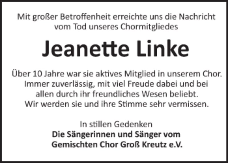 Jeanette Linkegestorben am 13. Oktober 2020