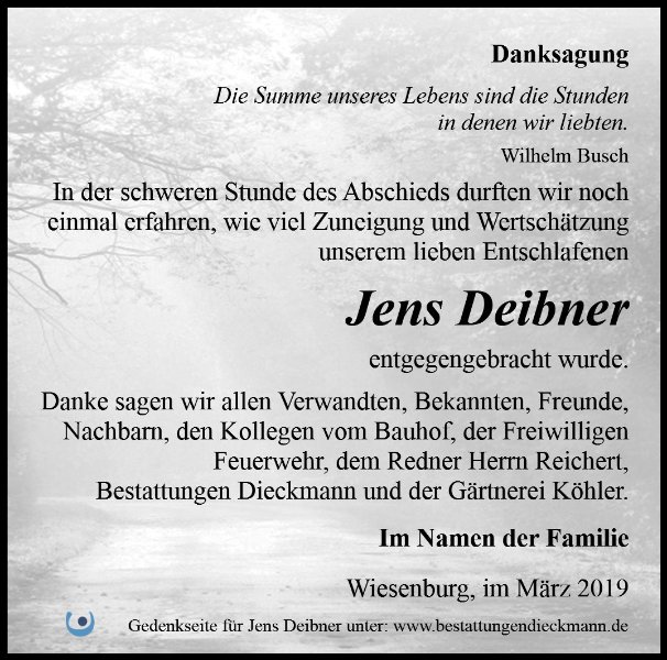 Jens Deibnergestorben am 7. März 2019