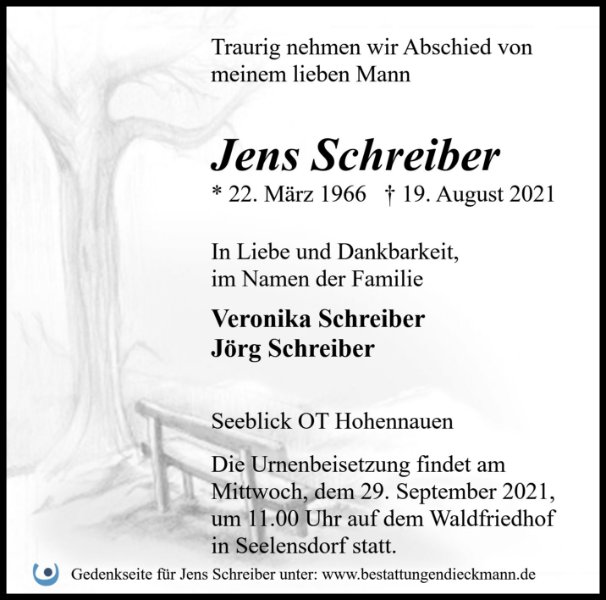 gestorben am 19. August 2021 in Seeblick OT Hohennauen