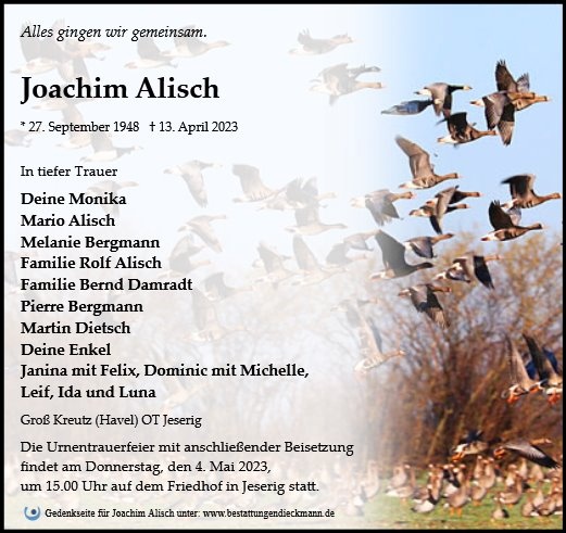 Mein aufrichtiges Beileid der Familie und ein letztes Weidmannsheil für Joachim .