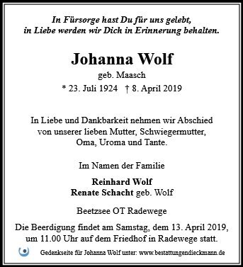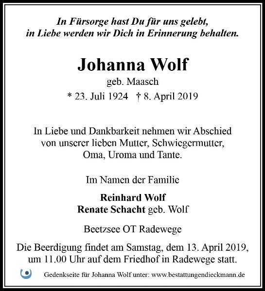 Johanna Wolf geb. Maasch