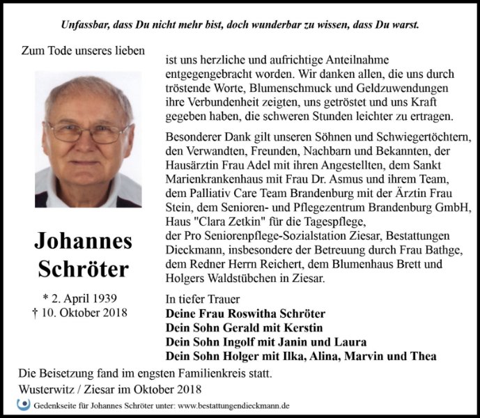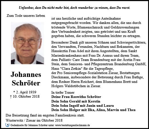 gestorben am 10. Oktober 2018 in Wusterwitz