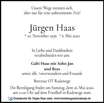 Wir haben erst jetzt vom Tod von Jürgen erfahren. Seit längerer Zeit haben wir uns zwar aus den Augen verloren, dennoch sind wir tief betroffen über diese traurige Nachricht. Gerne denken wir an die Zeit gemeinsamen Jagens auf der Alb zurück. Dir liebe Gabi und Jahn sprechen wir unser tiefes Mitgefühl aus. Christa und Helmut Wagner