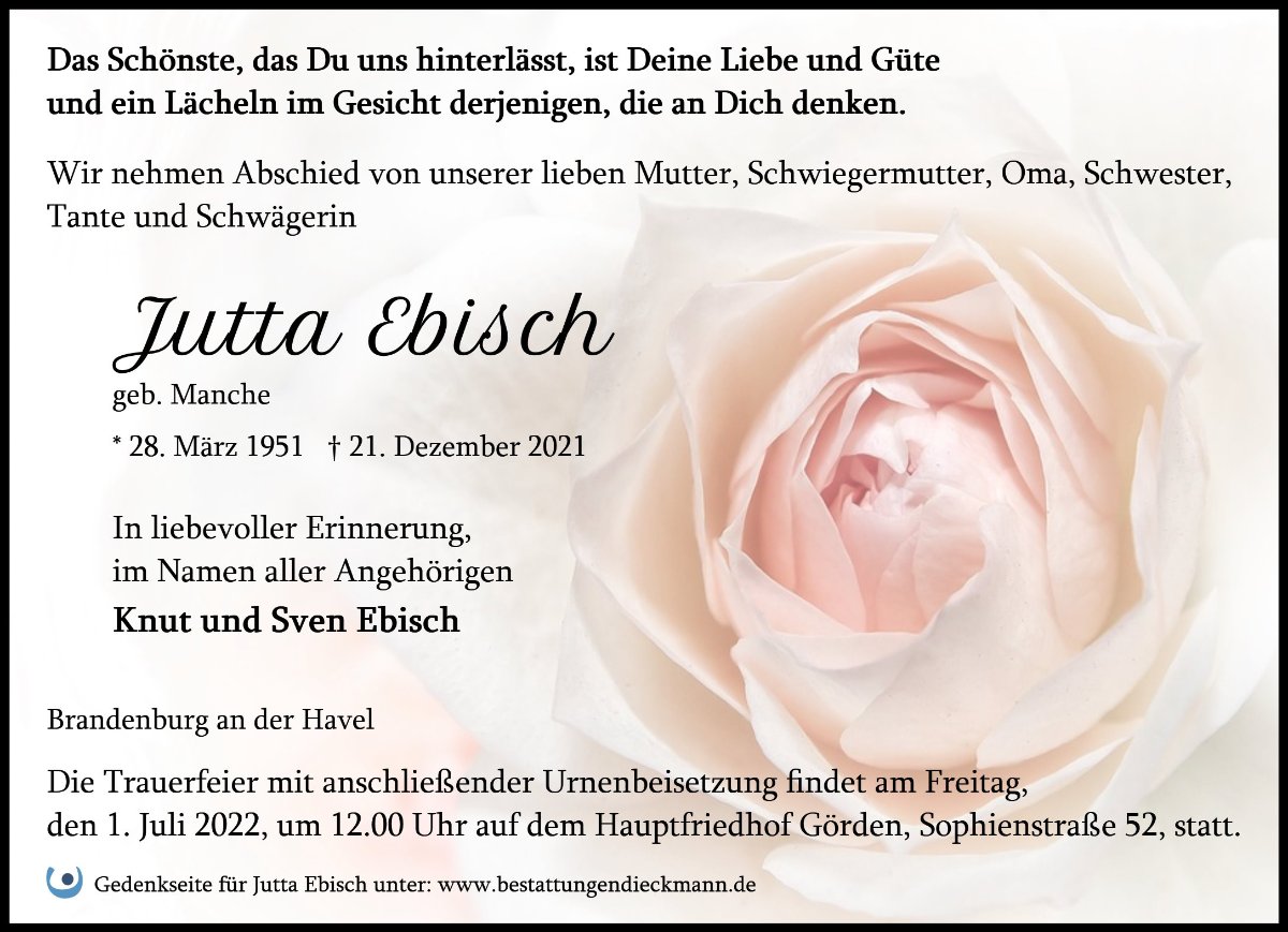 Jutta Ebischgestorben am 21. Dezember 2021