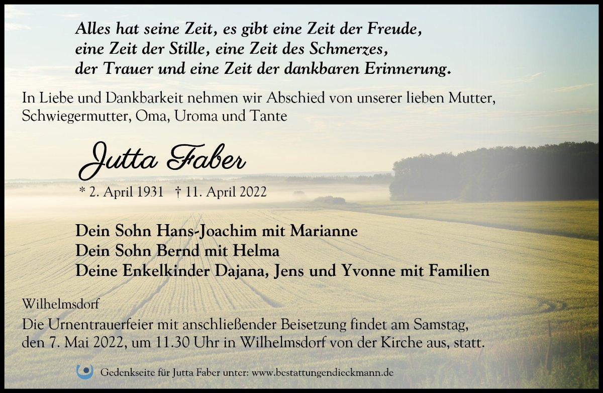 wir wünschen Ihnen für die kommende Zeit viel Kraft und dass es Ihnen gelingt, dankbar auf die positiven Erinnerungen zurückzublicken. Diese Gedenkseite möge Ihnen dabei helfen, Ihre Trauer zu teilen und das Andenken gemeinsam wachzuhalten.