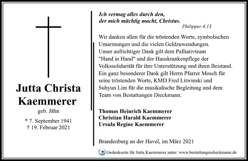 Jutta Kaemmerergestorben am 19. Februar 2021