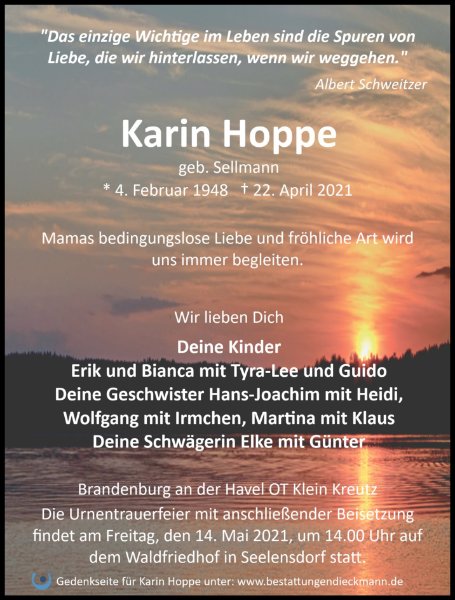 Urnentrauerfeier, Waldfriedhof Seelensdorf