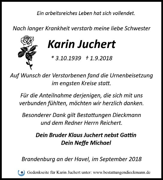 gestorben am 1. September 2018 in Brandenburg an der Havel