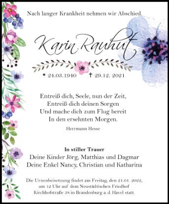 Lesen Sie hier die Anzeigen und Trauerpost!