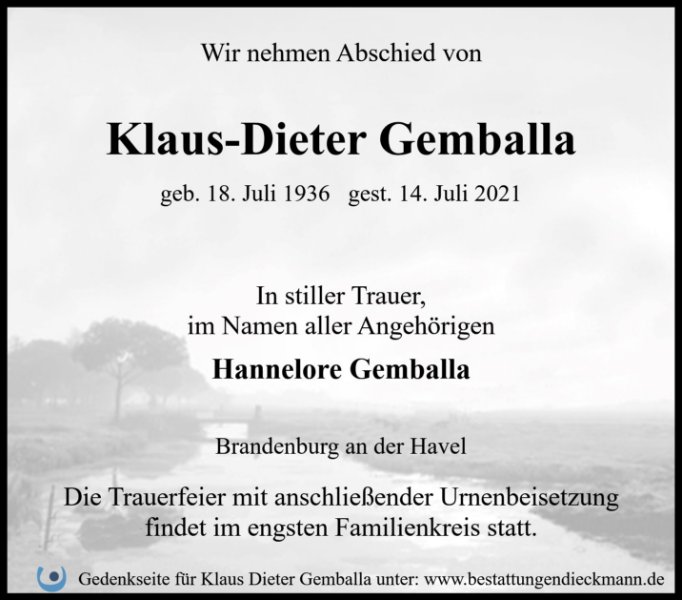 Klaus Dieter Gemballagestorben am 15. Juli 2021