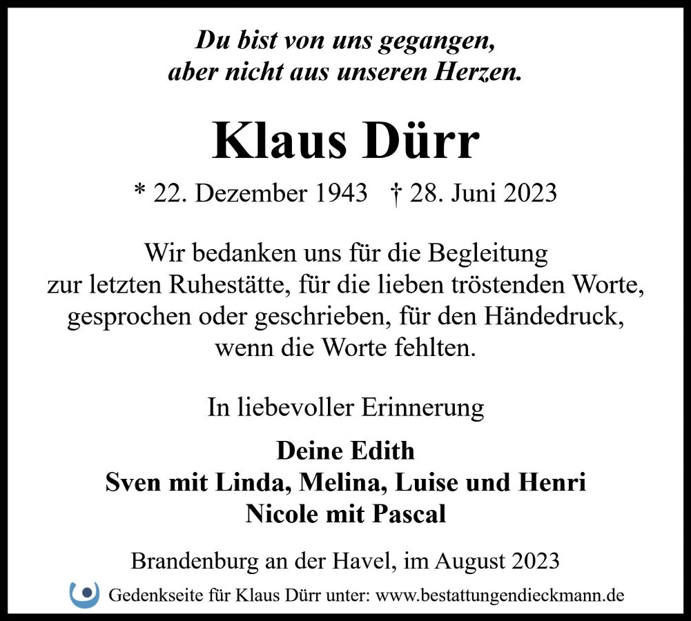 Klaus Dürrgestorben am 28. Juni 2023