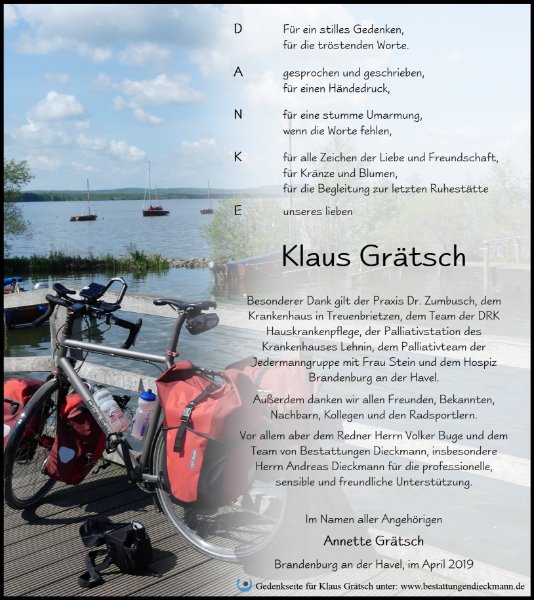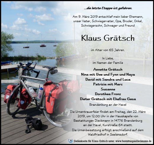 Dankbarkeit und die Erinnerung an Klaus mögen Dir Trost spenden und ich werde die gemeinsamen Jahre mit ihm in Unterfranken niemals vergessen. Er war ein echter Freund.