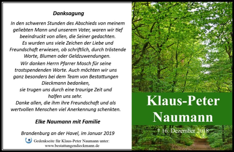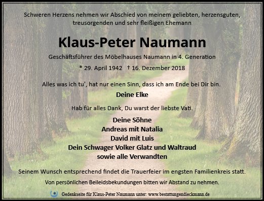 mit Bestürzung haben wir vom Ableben Klaus-Peter Naumanns erfahren.