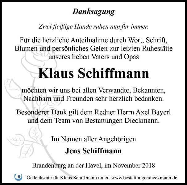 Klaus Schiffmanngestorben am 8. Oktober 2018