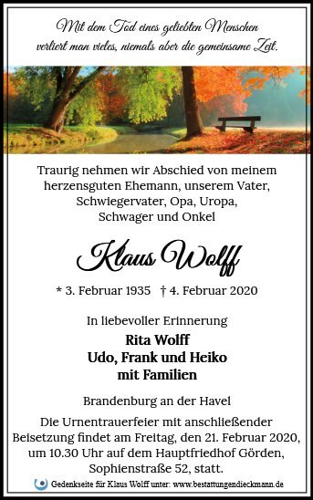 gestorben am 4. Februar 2020 in Brandenburg an der Havel