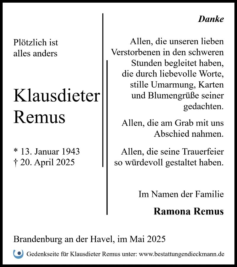 Klausdieter Remusgestorben am 20. April 2025