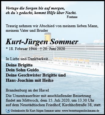 gestorben am 20. Juni 2020 in Brandenburg an der Havel