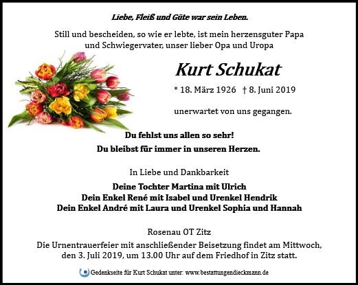 Liebe Familie von Kurt Schukat ,