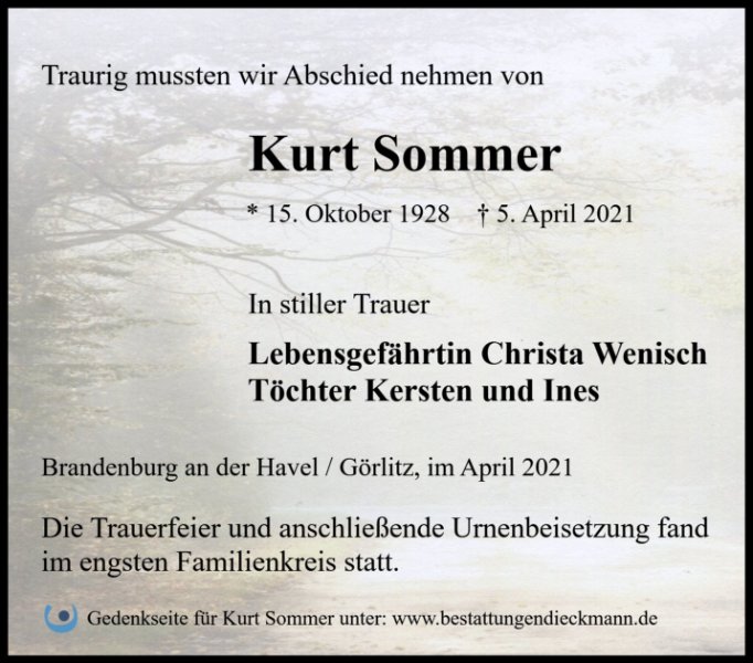 Erst jetzt habe aus der Zeitung erfahren, dass Kurt eingeschlafen ist.